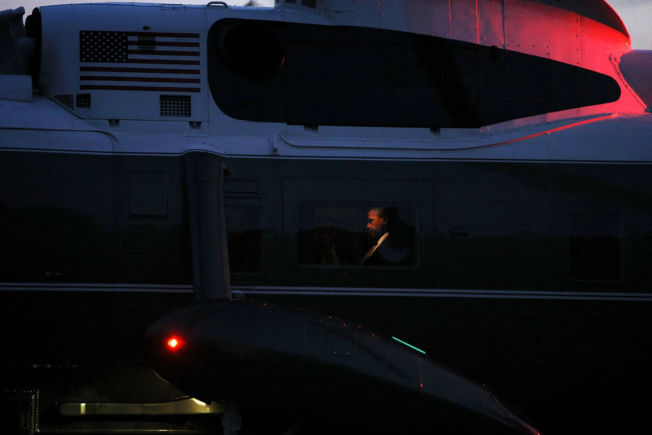 直到1956年,总统甚至不被允许乘坐直升机。在一次戴维营的撤离演习中,德怀特·艾森豪威尔总统的 limousine 被卡在一条弯曲的道路上的卡车后面,特勤局放弃了对单引擎直升机的长期安全反对。次年,空军采购了两架小型的泡泡鼻贝尔直升机,类似于在M*A*S*H开场序列中看到的那种。艾森豪威尔只乘坐了一次。这是另一场撤离演习,这次是在七月,他在狭小的驾驶舱内被华盛顿的阳光烤得很热。到了那年秋天再次需要乘坐直升机时,艾森豪威尔要求一架大型海军运输机——海军飞行指挥官的传统由此诞生。他们做的第一件事就是安装空调。