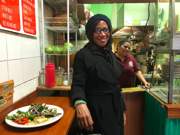 我在东149街的一家名为Delmy的多米尼加小吃店见到了BHR的创始领导人拉达克。在西班牙语肥皂剧的噪音和搅拌机的轰鸣声中,我们都点了新鲜绿叶蔬菜、芒果、黑豆和玉米的盘子,配上辣酱调味汁。这是布朗克斯沙拉,这个区的新“招牌”菜肴,BHR在2月份帮助创建并推出。现在它在八家餐馆和杂货店中都有供应。