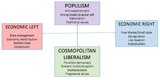 在使用2002年至2014年的欧洲社会调查数据进行多项统计模型分析后,研究人员得出结论,文化价值观结合某些人口特征最好地解释了欧洲民粹主义的兴起和程度。事实上,根据他们的研究,民粹主义支持的上升与五个关键文化价值观相关:反移民情绪、威权主义、对全球国家治理的不信任,以及右翼意识形态自我定位。