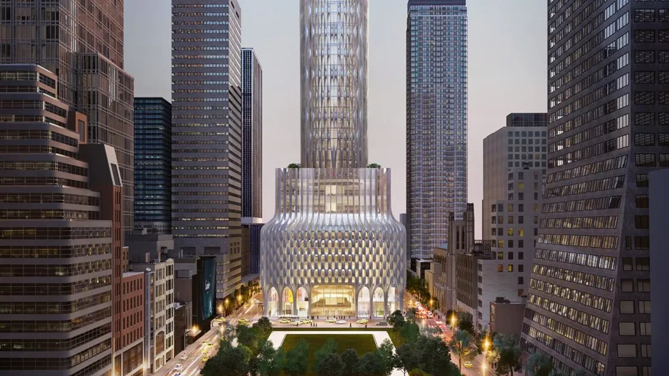 继续滚动……库什纳公司/扎哈·哈迪德建筑师事务所关于666第五大道的细节本周在彭博社和华尔街日报的报道中浮出水面。根据这些媒体的报道,库什纳公司正在与投资者谈判,开发可能产生高达120亿美元投资的项目。该公司的合作伙伴可能包括安邦,其对该计划的40亿美元投资将包括4亿美元用于库什纳公司。