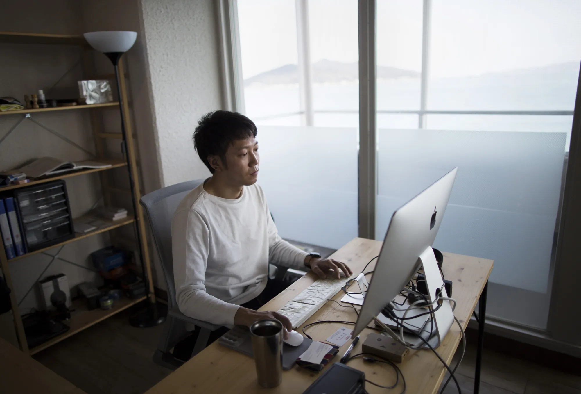 在他互联网初创公司的五楼办公室,Kazz Watabe可以看到海鲈鱼在海湾中跳跃,他一边听着爵士乐,一边在为他的钓鱼网站工作,海浪在下面的沙滩上拍打。