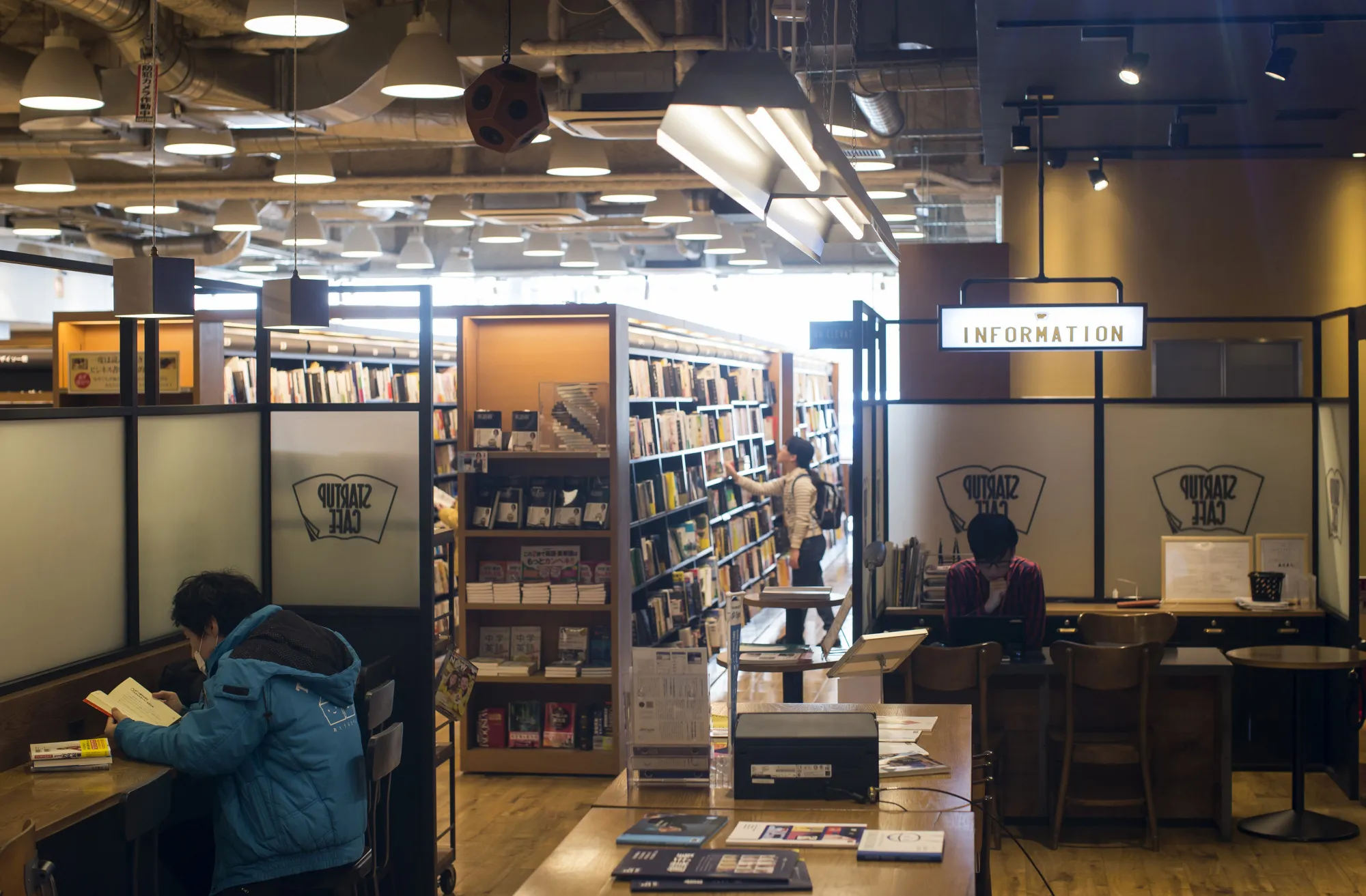 福冈的创业咖啡馆在Tsutaya书店内。摄影师:大住智宏/彭博社利用该服务的包括29岁的雅斯敏·久迪和28岁的托马斯·普普林,他们是该市首批获得 创业签证的受益者。他们于2014年作为研究生交换学生从法国波尔多来到福冈,并于2016年在该市创办了在线求职匹配公司Ikkai Inc.。