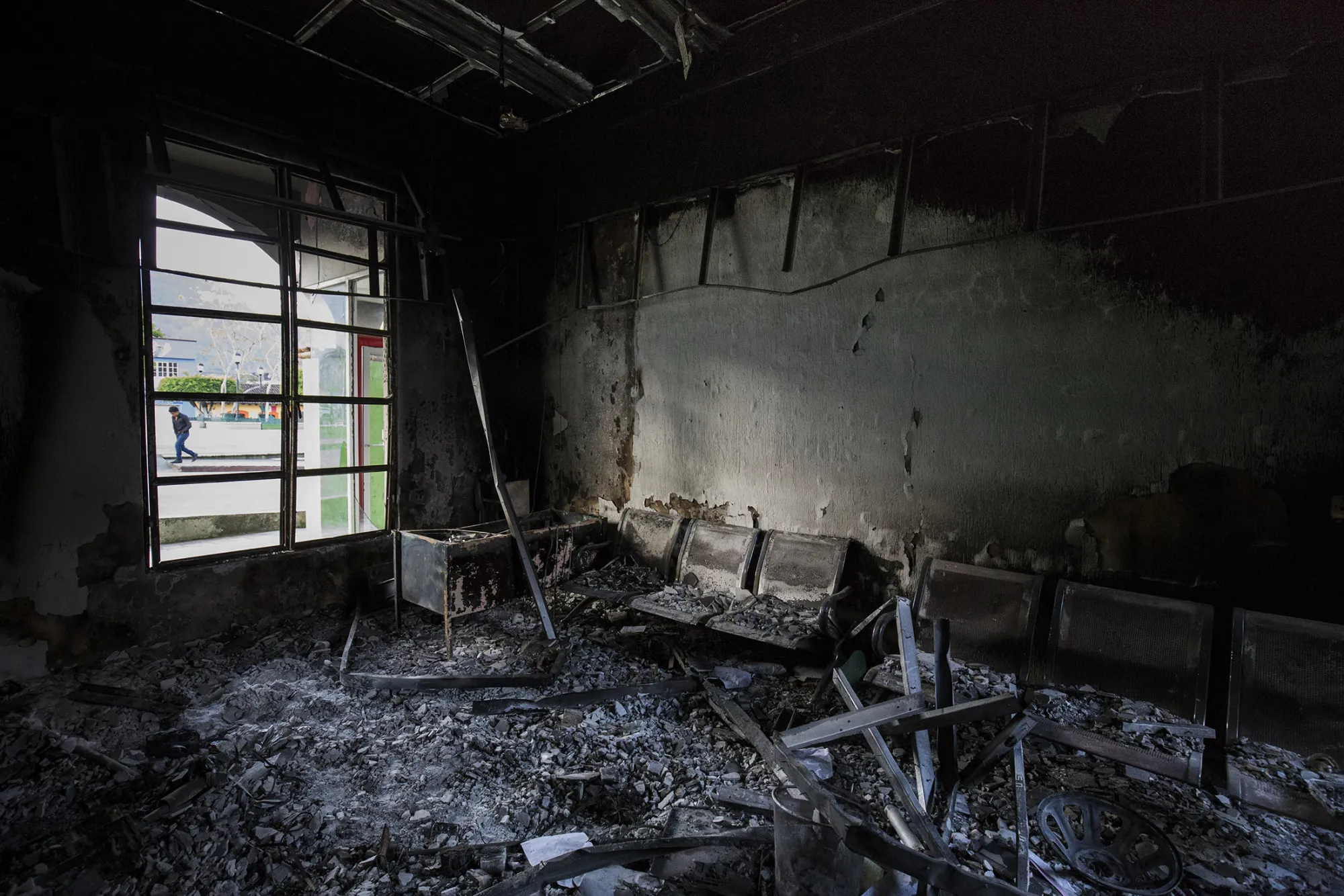 愤怒的原因是石油,具体来说是政府计划将他们的农业社区周围的一片土地拍卖给私人钻探公司。当地人表示,他们并未被告知已设定了一个日期——7月12日。当他们得知这一消息时,便纵火焚烧了这座两层的市政厅,现在它已被烧焦并废弃,窗户破碎,铁门锁链紧闭。塔上的时钟停在了10:55。