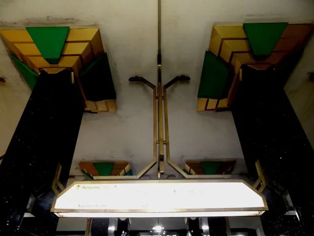 新保护的阿尔特施塔特斯潘道车站的棕榈树状拱顶。英戈尔夫/Flickr鲁姆勒的设计不仅闪耀,还有一种独特的机智。确实,他值得赞扬,因为他为他的地下车站与地面位置之间建立了一定的联系。例如,位于罗尔达姆的新保护车站,装饰方案包括齿轮和滑轮以及暴露的天花板梁,暗示了附近的工厂。