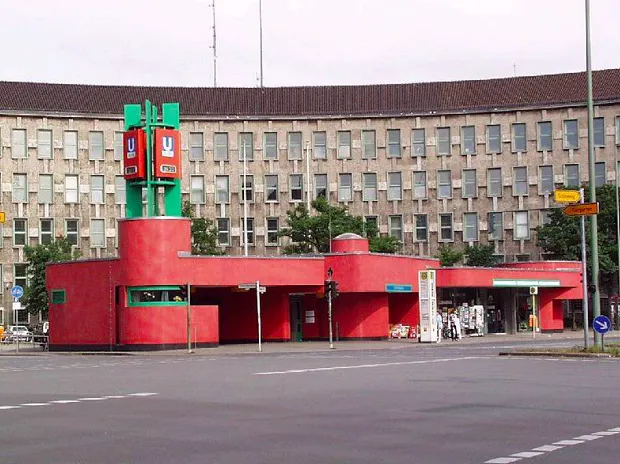 Rummler于1971年设计的Fehrbelliner Platz车站的入口大厅,1月份被列为纪念地。Axel.Mauruszat/WikimediaSchlossstrasse地铁站也被列入;这里最大的保护并不一定是车站本身,而是其上方那座奇特而受人喜爱的塔楼,里面有一家咖啡馆/餐厅。这座塔楼总是被称为Bierpinsel——或称啤酒刷——因为它大致呈剃须刷的形状,并且是为了供应啤酒而建造的。