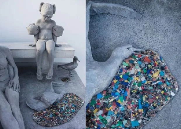 现在,伦敦的行人可以通过杰森·德凯尔斯·泰勒的新公共艺术作品“塑料杀戮”获得对海洋污染破坏的令人作呕的提醒。这座坐落在国家剧院旁的混凝土雕塑,展示了一个四口之家在海滩野餐,父母在一群呕吐塑料的海鸥包围中幸福地微笑。(这些呕吐物实际上是从西班牙兰萨罗特岛周围找到的垃圾制成的。)沮丧的孩子们看起来不那么无知——也许这表明他们知道这将是他们这一代人的下一个问题。