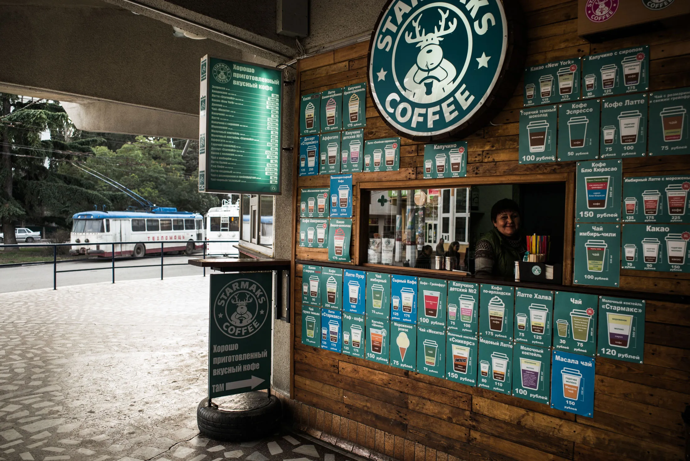 阿卢什塔的Starmaks咖啡店老板表示,西方制裁使得星巴克公司不太可能因其品牌而找上他们。摄影师:米沙·弗里德曼,彭博社许多克里米亚人过着双重生活,接受俄罗斯的法律和官僚制度,同时继续跨越到未占领的乌克兰探访家人或获取欧洲或美国签证。