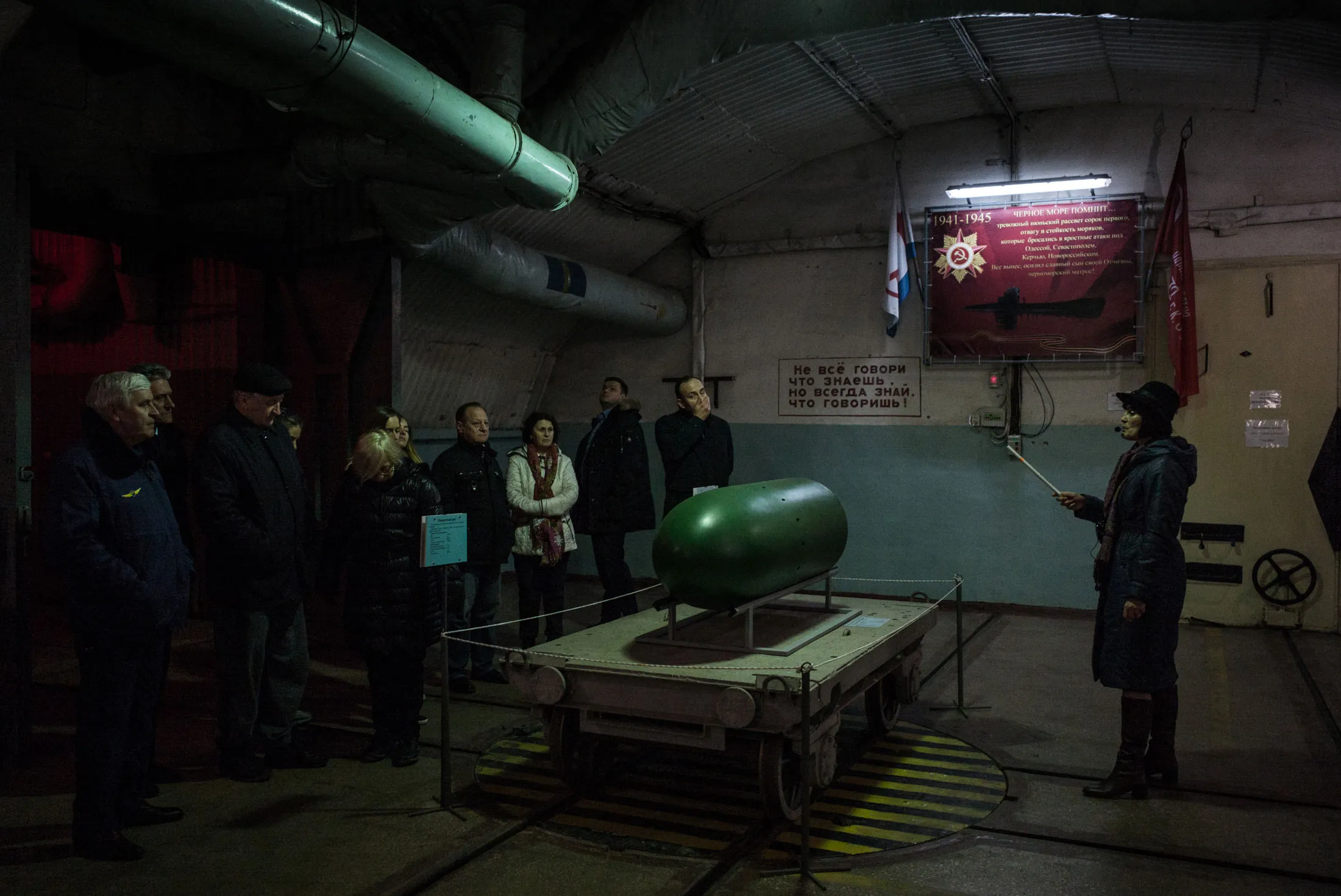 巴拉克拉瓦一个前核潜艇基地的导游描述了一枚弹头。