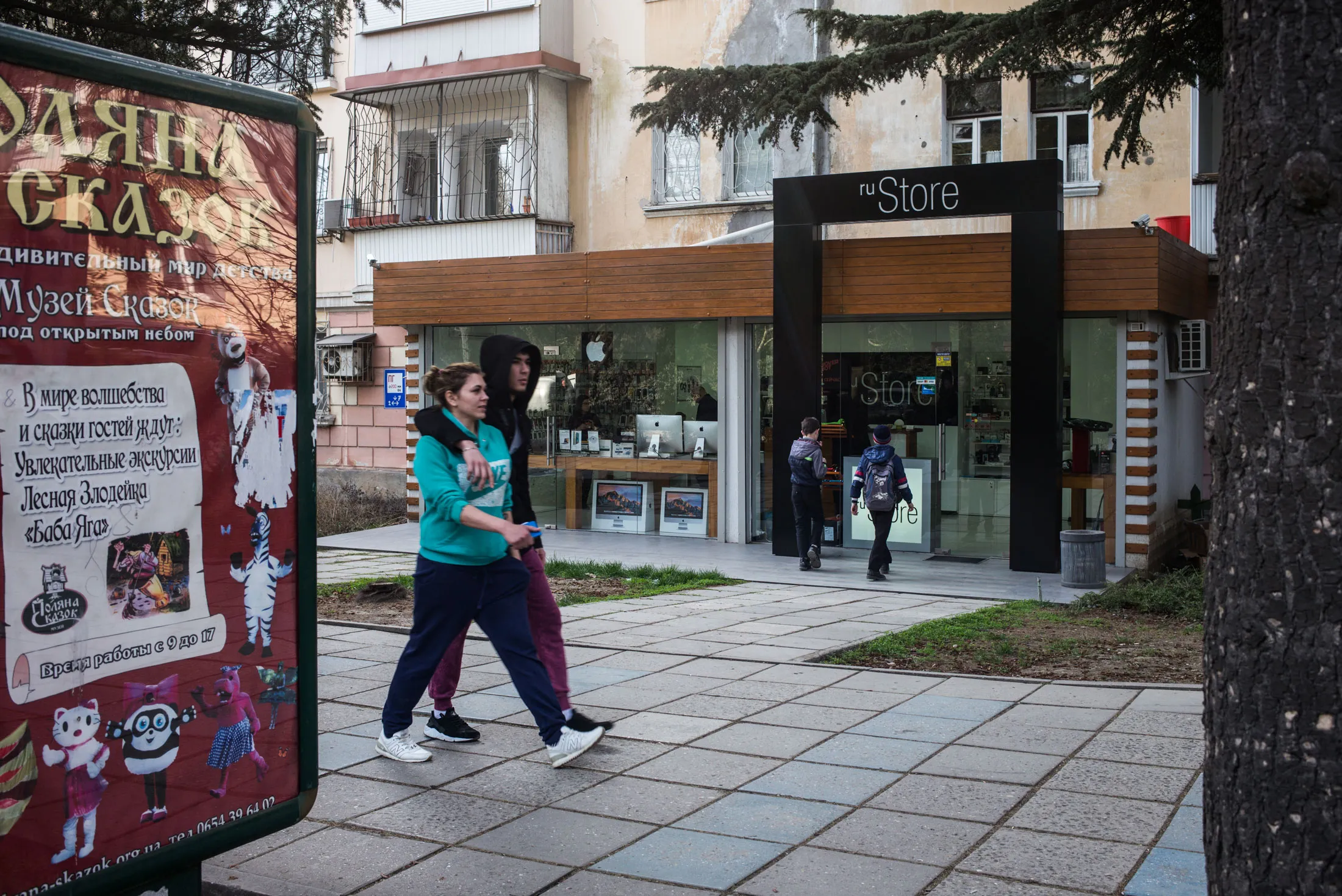 还有一些零售商看起来与苹果商店和星巴克咖啡店相似,甚至品牌也很相近。位于阿卢什塔的Starmaks咖啡店的老板表示,他们认为制裁使得星巴克公司不太可能因版权侵权而追究他们的责任。iPhone、苹果电脑和个人电脑也在销售——这些产品是从俄罗斯进口的。网上快速搜索显示了许多关于如何规避制裁甚至注册iTunes账户的说明。(星巴克、麦当劳和苹果未回复电子邮件请求评论。)