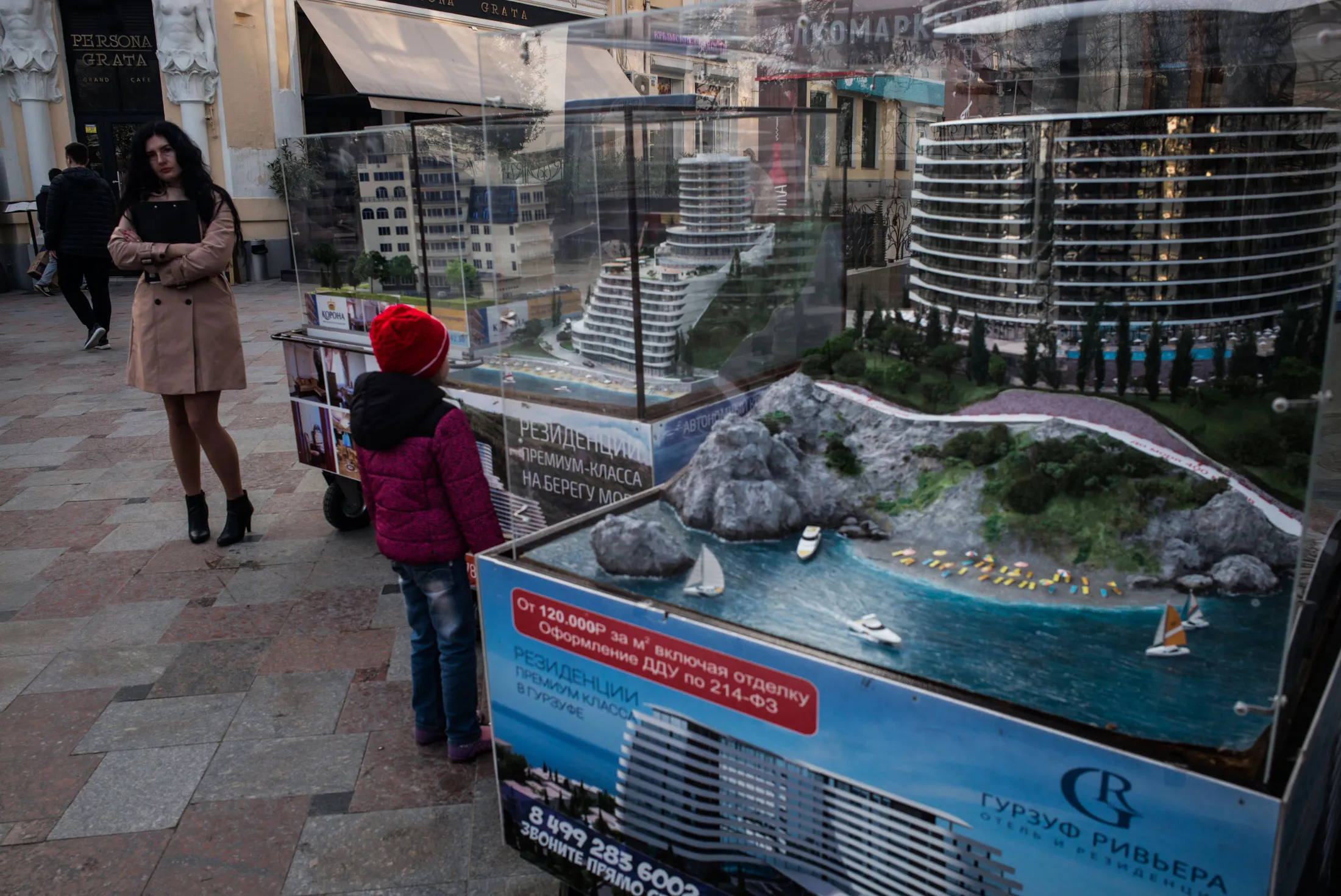 新的豪华开发项目在雅尔塔向富有的俄罗斯游客进行宣传。摄影师:米沙·弗里德曼,彭博社