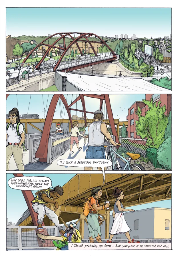 彭博社城市实验室美国人如何投票导致住房危机加州大学伯克利分校为转学生提供专门建造的校园住所熊队首席警告芝加哥没有新的NFL体育场的风险罗马可能开始对特雷维喷泉收费瓦克手册在芝加哥的八年级公民课上教授,直到1930年代末。虽然它经过多次修订,但其目标始终如一:让年轻的芝加哥人对伯纳姆的宏伟愿景感到兴奋,通过公共湖滨、更宽的道路和高速公路系统等元素为大都市带来秩序、效率和卫生。最终,该指南旨在激励孩子们成为城市的管理者。CAF的青少年学员们想知道为什么今天没有类似的手册——里昂也是如此。她决定通过一个新的书籍项目为年轻城市居民的规划直觉带来一些结构:一本图画小说。