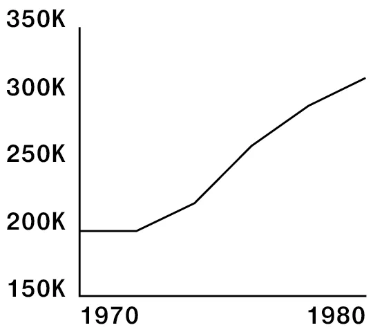 监狱人口开始长期上升。数据:司法统计局1980年代
