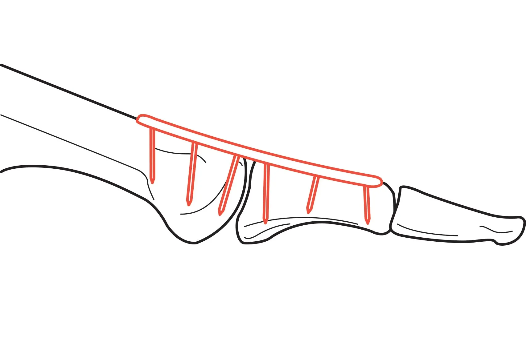 植物外科医生将一个压缩的Cartiva植入物插入孔中,植入物在其中膨胀,以便在没有固定件的情况下牢牢保持在位。