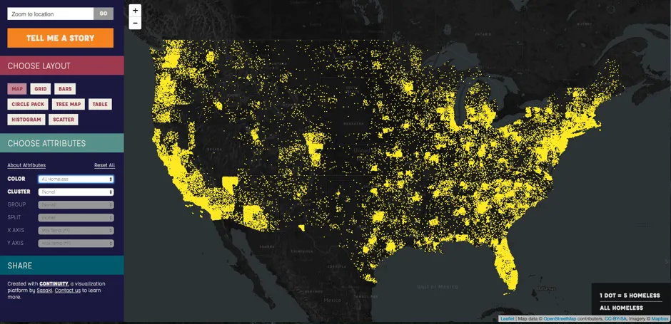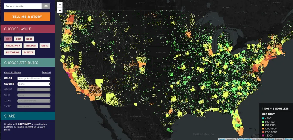 这就是格雷琴·基勒的 新数据项目的作用。基勒是设计公司 萨萨基的城市规划师,她希望通过炫酷的数据可视化将无家可归问题分解为简单易懂的部分。“作为一名规划师,我认为我们应该对这个问题承担更强的责任,并将[无家可归者]融入城市的结构中,”她说。