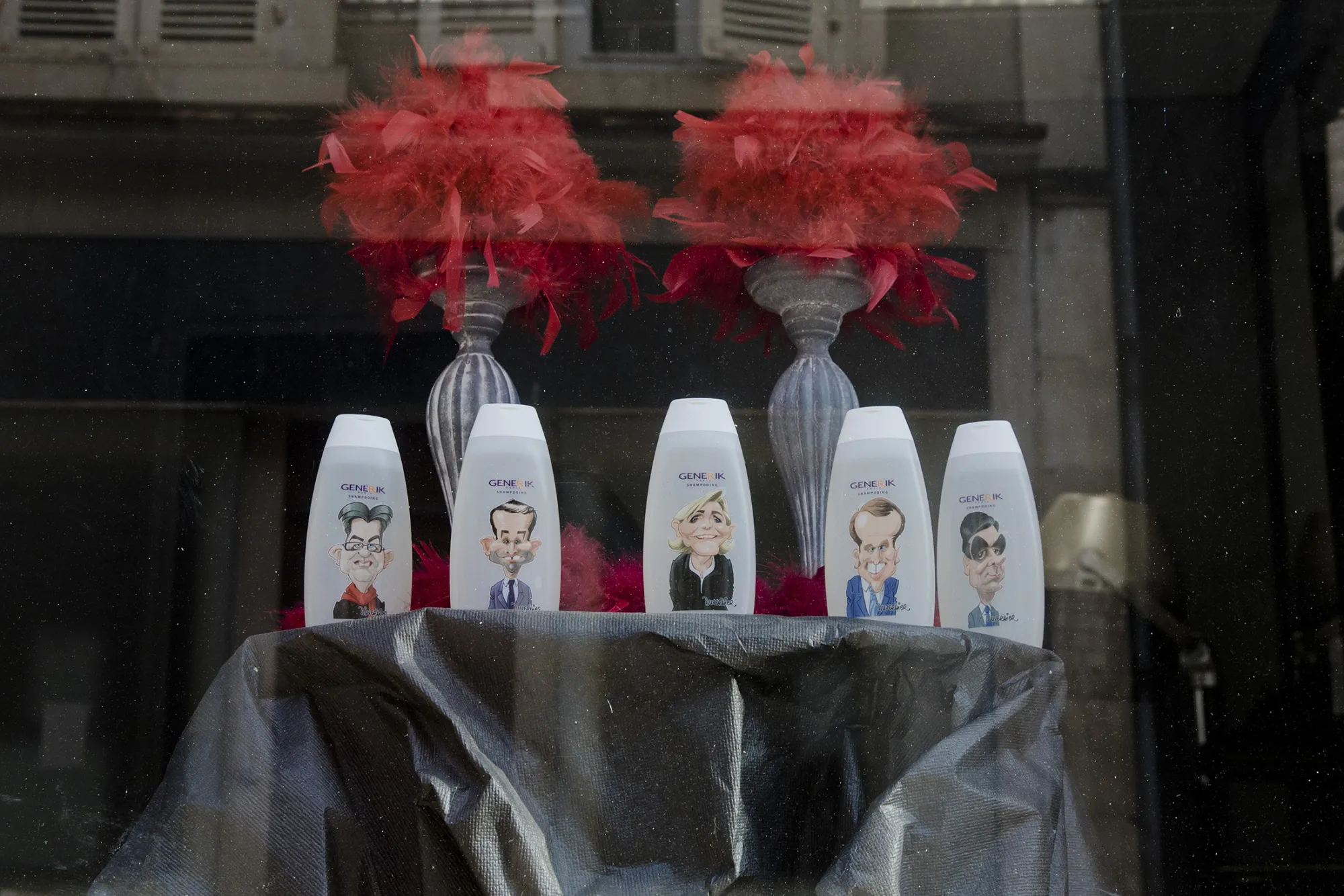 这个小镇作为政治风向标的日益声誉使当地人对民主过程产生了特别的兴趣。理发店的橱窗里展示着五位主要候选人的卡通洗发水——值得一提的是,马克龙的大笑容和菲永的浓密眉毛最受欢迎。