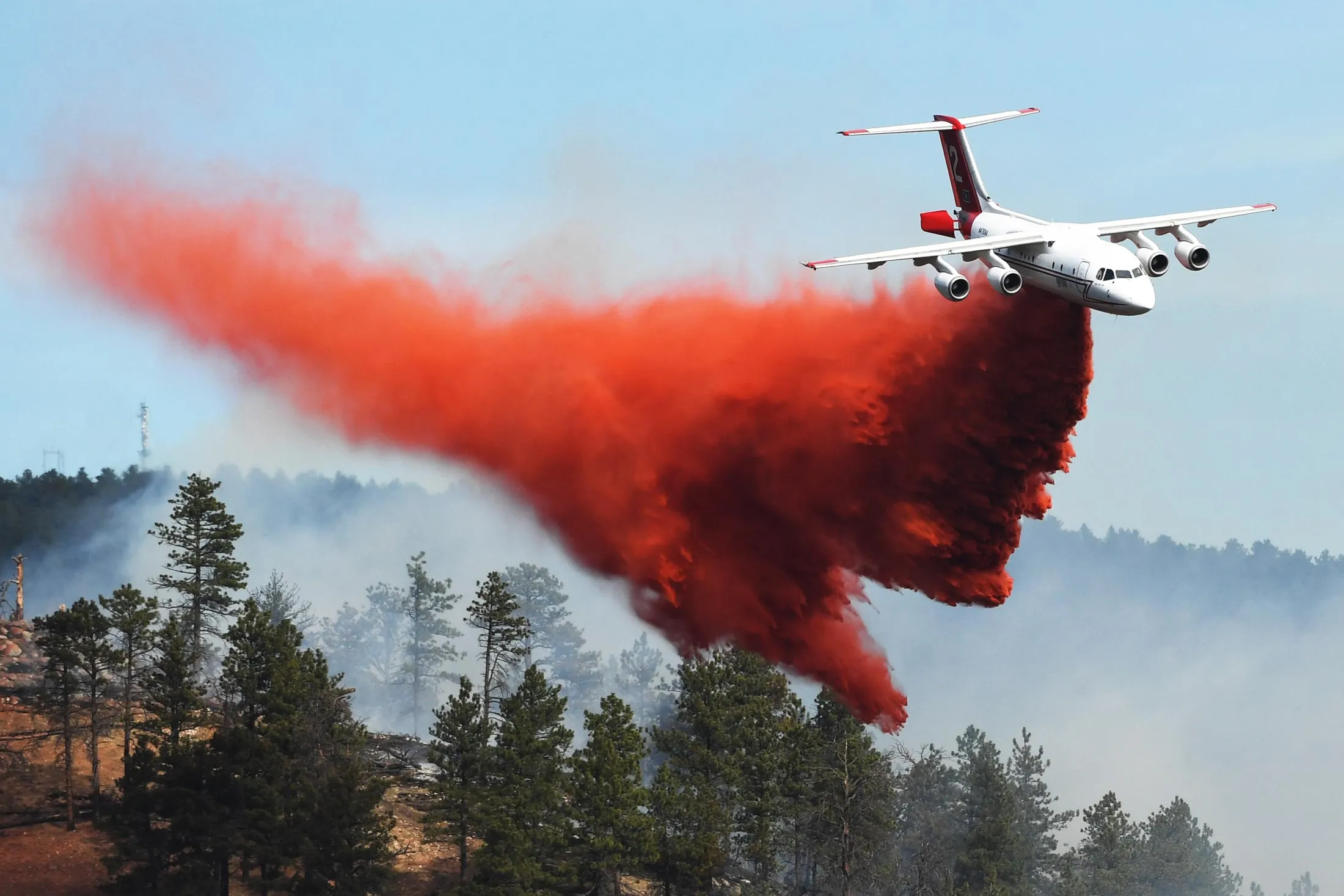 消防队从空中在科罗拉多州博尔德的阳光峡谷扑灭野火。摄影师:RJ Sangosti/《丹佛邮报》通过Getty Images在落基山脉以东,温和干燥的季节意味着更多的野火。