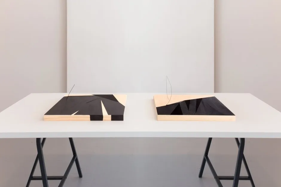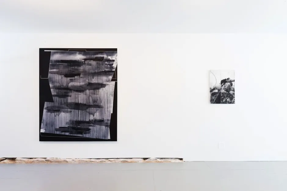 左侧的画作是托克瓦斯·戴森的《价值与资源》(水桌#10)(2017年,丙烯画布,72” x 60”)。右侧是哈罗德·门德斯的《让X站立,如果它能为未被发现的人站立》(《五边形过程》后)II(2016年,纸上墨水和碳粉,装裱在辛特拉上,29.5" x 19.5”)。达里尔·理查德森/来自我们买黄金的赞助贝洛拉多-萨缪尔斯预计画廊将在当前地点存在五个月左右。她计划了另外两场展览,名为——非常简单的——“二”和“三”。第二场将展示南非艺术家探索记忆与抵抗,第三场将展示关于可见性的作品选择,由Black Women Artists for Black Lives Matter(贝洛拉多-萨缪尔斯是其中一员)。