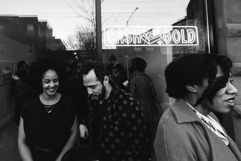 流动艺术画廊 We Buy Gold 开幕招待会的与会者Darryl Richardson/We Buy Gold 提供我在半个街区外看到了 Joeonna Bellorado-Samuels,一只手拿着香烟,另一只手拿着一家小店的咖啡。Bellorado-Samuels 是位于纽约市切尔西区的 Jack Shainman Gallery 的馆长,身穿全黑,戴着超大厚边眼镜,头发高高盘起。