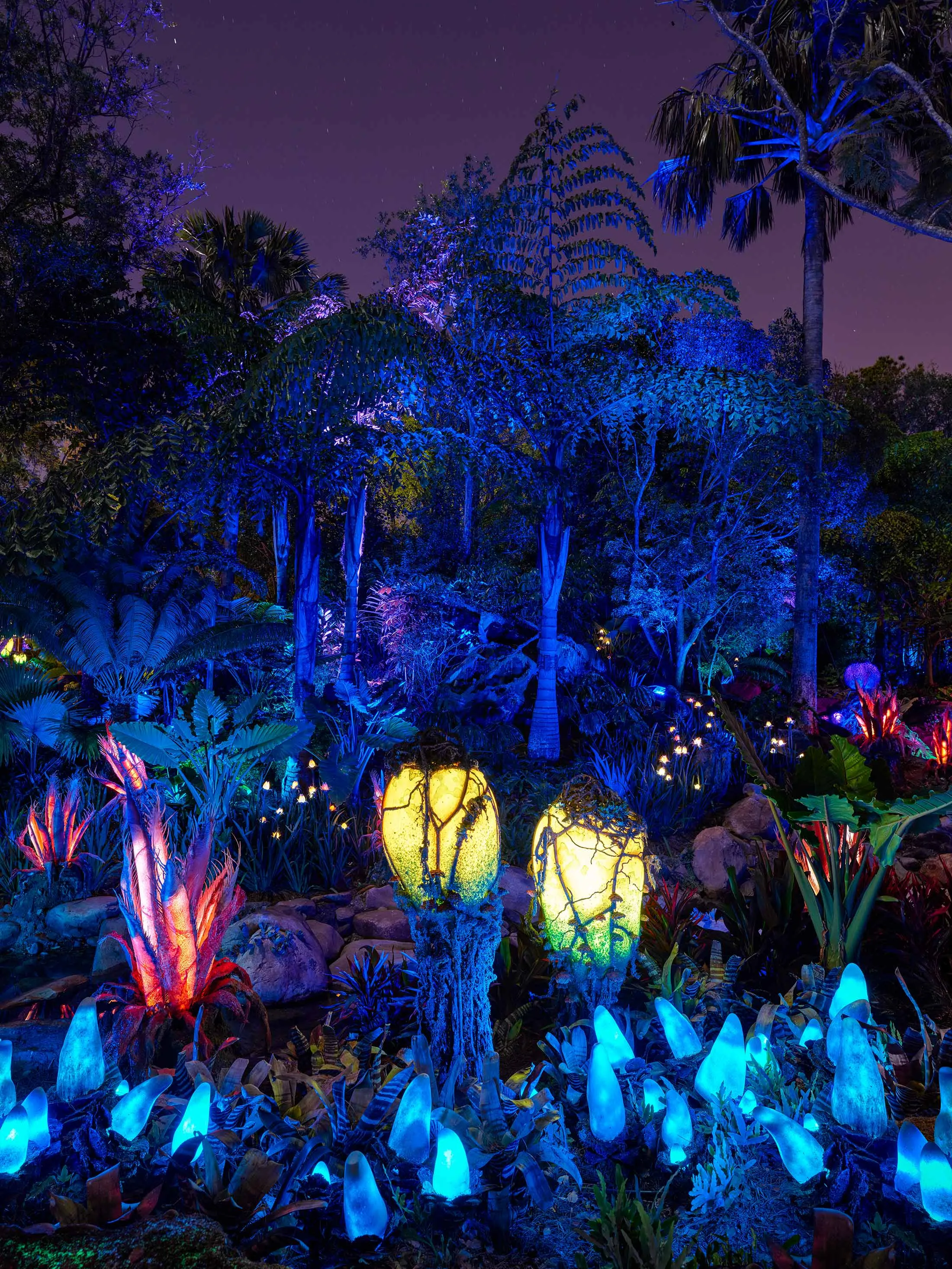 潘多拉的发光植物也需要一些创造力。早期,当想象家们制作森林的模型时,他们意识到每种外星植物——数百种假蕨类植物和看起来像捕蝇草的东西——如果要在日落后发光,就必须连接到一个中央电源。植物的电力需求如此之高,以至于每种植物都必须插入自己的2英尺高的控制箱。想象家们将这些隐藏在树桩和真实植物后面。