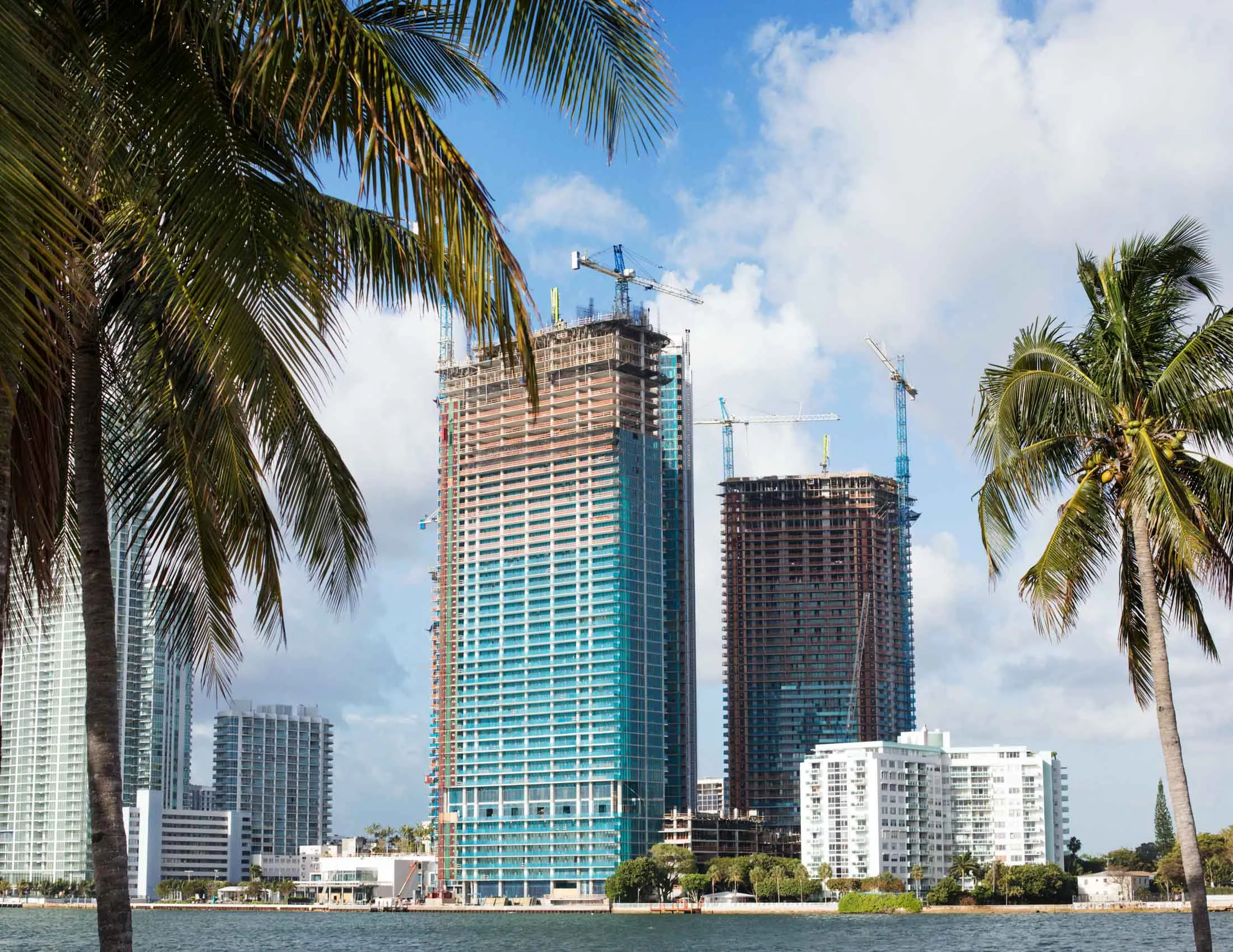 在迈阿密海滩对面的埃奇沃特,公寓正在兴建。海平面上升并没有阻止开发商在水边建造,也没有阻止人们在那儿购房。