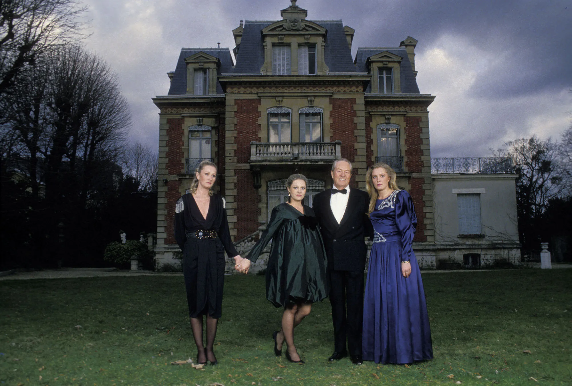 从左到右,扬·勒庞、玛丽-卡罗琳·勒庞、让-玛丽·勒庞和玛丽娜·勒庞在1988年于法国圣克劳德的家蒙特鲁外合影。摄影师:弗朗西斯·阿佩斯特居勒庞一家在法国资产阶级的标准下过着不寻常的家庭生活。父母与三个女儿分开生活,常常外出旅行、航海、聚会或竞选。