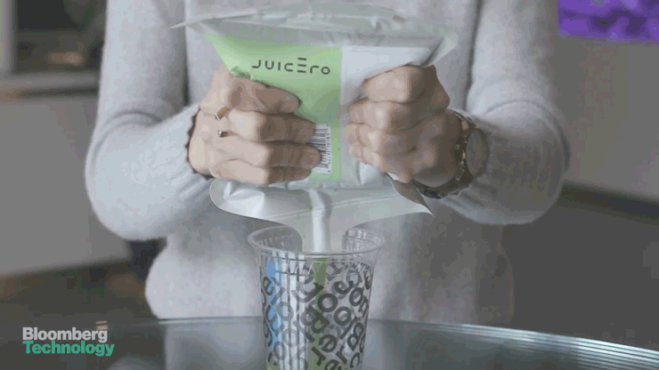 Juicero拒绝发表评论。一位接近公司的人士表示,Juicero知道这些包装可以手动挤压,但大多数人更愿意使用机器,因为这个过程更一致且更不麻烦。该设备还读取印在每个果蔬包装背面的二维码,并与在线数据库核对来源,以确保内容没有过期或被召回,这位人士说。过期日期也印在包装上。