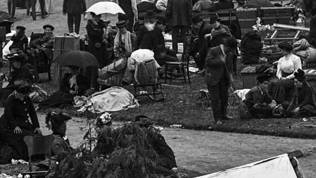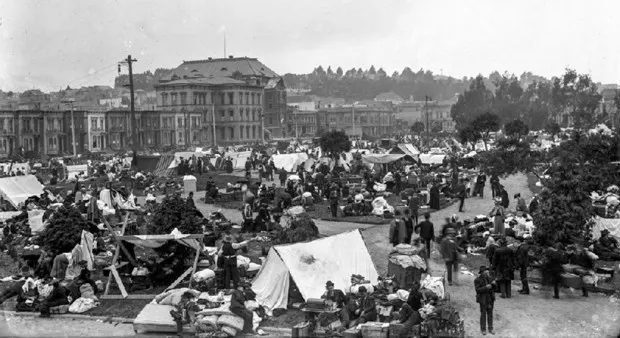 在1906年 旧金山 地震中涌现出的所有可怕场景中——这场地震 造成 大约3000人死亡,225000人受伤——在地震后的4月19日,旧 汉密尔顿广场 的难民营的场景,令伍迪·拉邦提心有余悸。