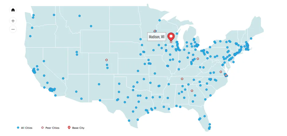 芝加哥联邦储备银行刚刚推出的一种新工具,从比居民有时所做的比较(“钩住他们的角!”与“去蓝色!”)更详细的角度来看待姐妹城市的概念。 同行城市识别工具就像公民数据的DNA测试,允许用户一目了然地了解某些城市的特定兴趣和挑战的对齐点,以及它们的偏差——实际上,谁是它们真正的兄弟、表亲和其他亲属。