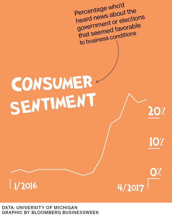 插图:731特朗普的涨势总是有些不稳定,这是在唐纳德·特朗普在11月意外获胜后,投资者和商界人士之间的热情激增。人们之所以兴奋,部分是因为其他人兴奋:他们相信乐观会成为自我实现的预言,引发消费、投资和经济增长的良性循环。希望依然存在。4月24日和25日,股市上涨近2%,部分是因为市场对白宫减税公告的预期。