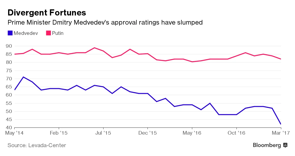 ***底线:***对俄罗斯总理梅德韦杰夫的贪污指控使他的支持率降至42%,创下历史新低。