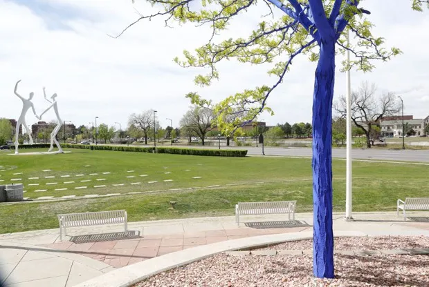 蓝色的东西大卫·布朗摄影丹佛的植物现在似乎更适合行星Zorp而不是地球。市中心的树木经历了惊人的转变,它们的枝条变得像反应堆核心中的 发光水一样不自然地蓝。