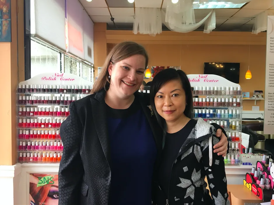 “美国人为了亚洲人做这些——感觉很好。”一些沙龙工作人员在她匆忙进来时不知道该如何应对,手里拿着带有联邦机构印章的文件;许多在拿骚县的移民工人是无证的。但麦克弗森勇敢地带着她的大学证件,并向担心的工人们保证她并不寻求个人信息。她只是想确保他们的安全。“我得到了拥抱和感谢,”她说。“这些信息是赋权的。”