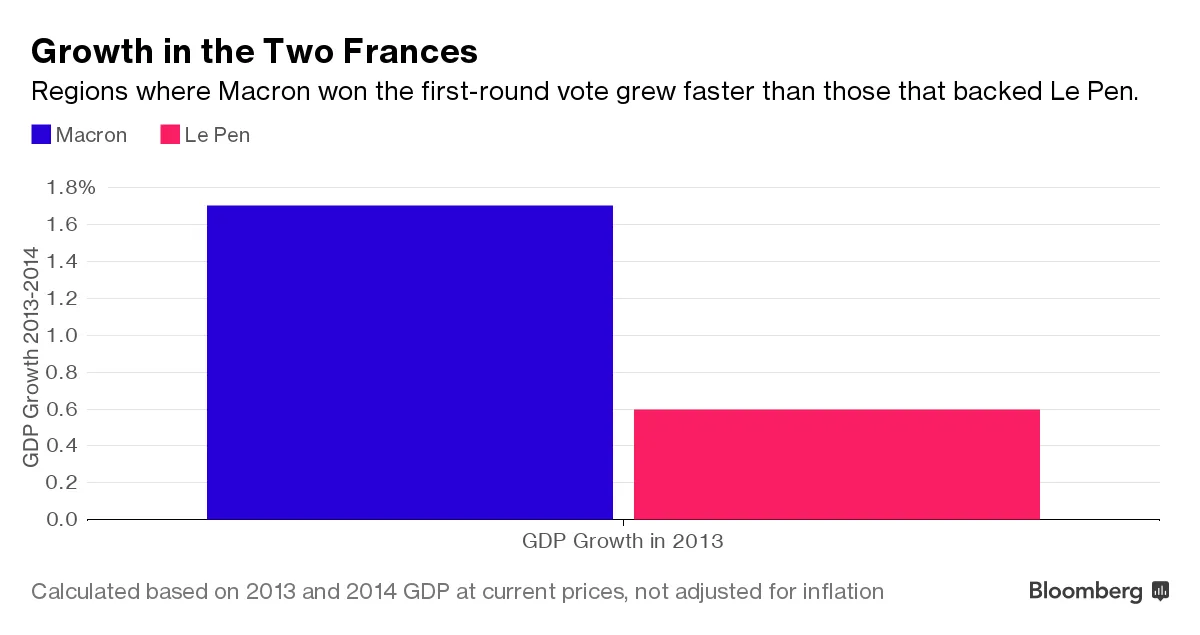 随着传统制造业工作转移到欧盟内或亚洲的更便宜地点,历届政府未能扭转法国北部和东部的经济衰退。这就是勒庞在4月23日第一轮投票中赢得大部分支持的地方,也是领先者埃马纽埃尔·马克龙选择在几天后启动第二轮竞选的地方。