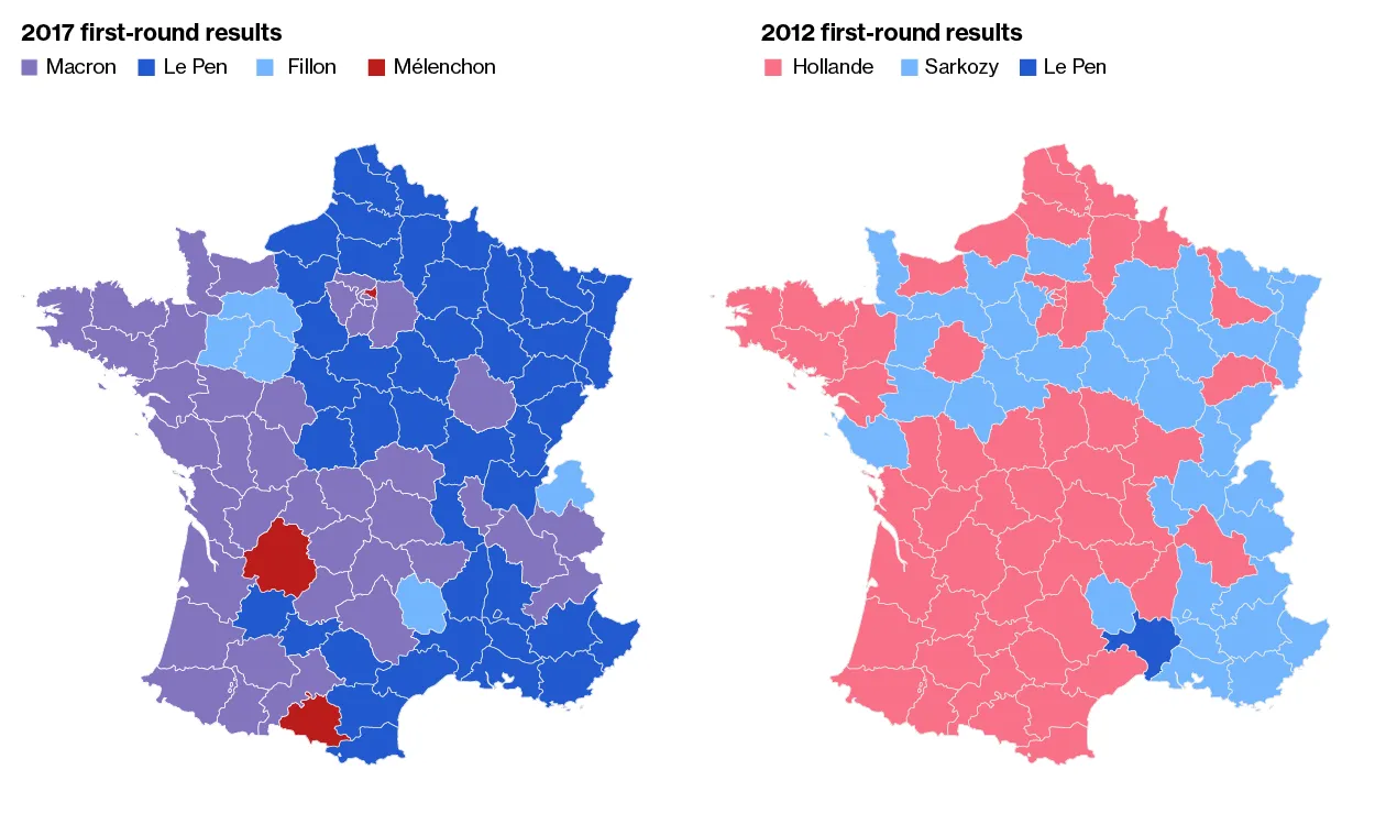 勒庞在第一轮投票中已经发布了她政党有史以来最大的选票,这 暴露了法国社会的分裂。国民阵线候选人在法国工业衰退的抑郁城镇以及南方的保守心脏地带取得了胜利。马克龙在西部赢得了中产阶级和上层阶级选民的支持,他们在大城镇和城市中支持他。