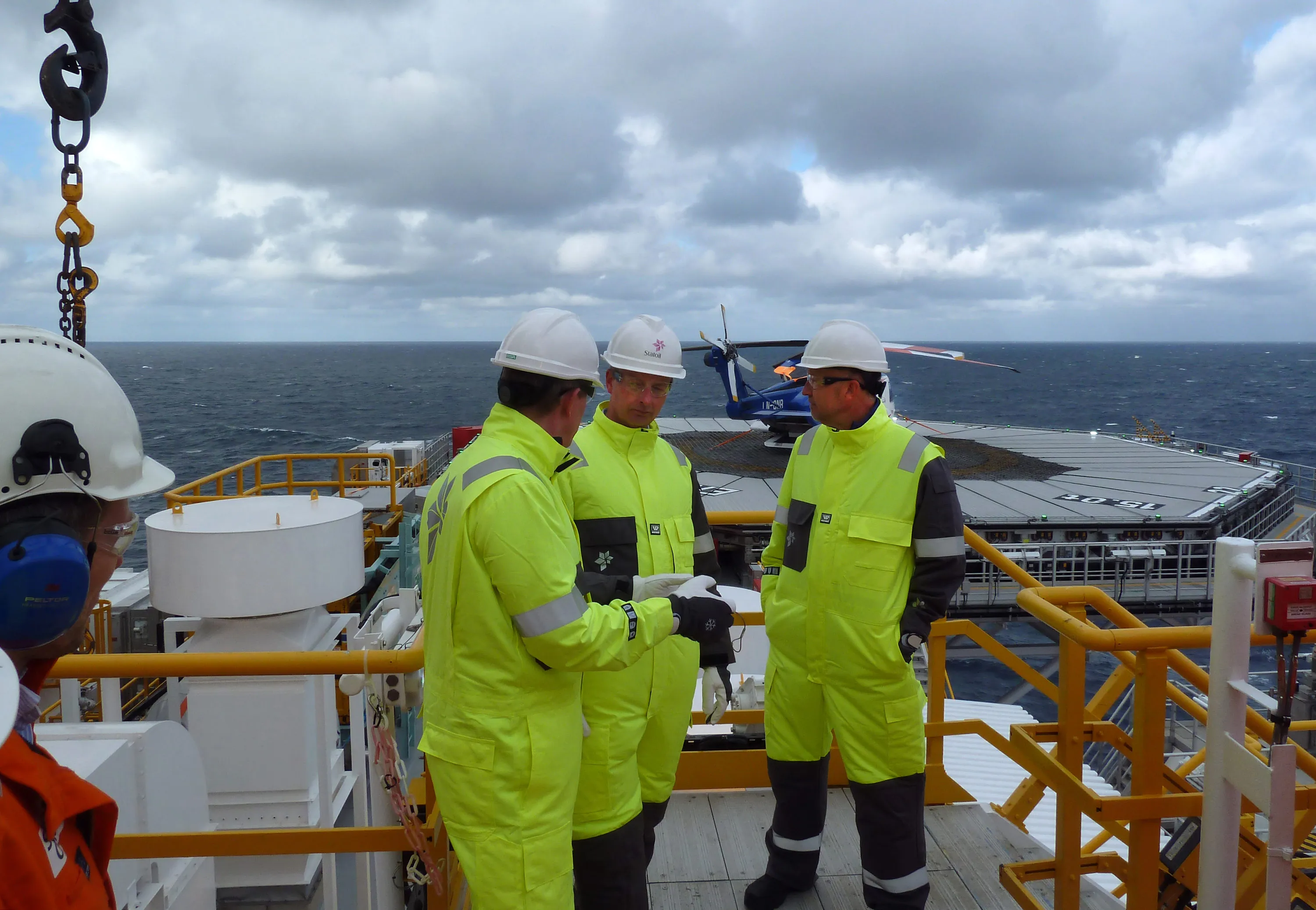 挪威能源部长特尔耶·索维克内斯(Terje Soviknes,居中)、斯塔托伊尔勘探负责人蒂姆·多德森(Tim Dodson,右)和斯塔托伊尔挪威及英国勘探负责人杰兹·阿弗提(Jez Averty)站在Songa Enabler船上。摄影师:米凯尔·霍尔特(Mikael Holter)/彭博社“以每桶35美元的盈亏平衡价,我们具有竞争力,甚至更具竞争力,”他在Enabler船上的一次采访中提到斯塔托伊尔的卡斯特贝格(Castberg)项目时说。“这使得许多关于搁浅资产的争论消失了。”