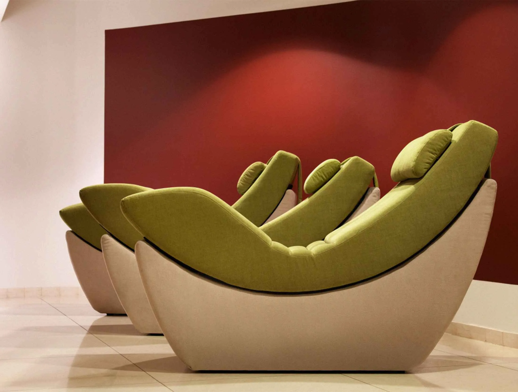 瑞士酒店柏林的午睡休息室。来源:瑞士酒店考虑到其著名的夜生活场景,柏林并不让人感到“放松”。但是瑞士酒店柏林的深度睡眠套餐Swissotel Berlin *(每晚起价189美元)*可能是过度派对的解药。睡眠学家迈克尔·费尔德博士开发了这个项目,首先是一个叫醒电话和一杯由马黛茶、芒果和菠萝汁、生姜、香草和薄荷制成的提神饮料。然后是半小时的光箱照射,据说可以提升情绪和能量。在睡前,你会喝到一杯“冷静饮料”,由黑巧克力(含有少量咖啡因,但也含有使人昏昏欲睡的色氨酸)、橙子、鼠尾草和薰衣草制成。最后,你会把头放在一个发出双耳节拍的枕头上,这种枕头提供低频音调, supposedly 有助于调整你的脑波以获得最佳休息。
