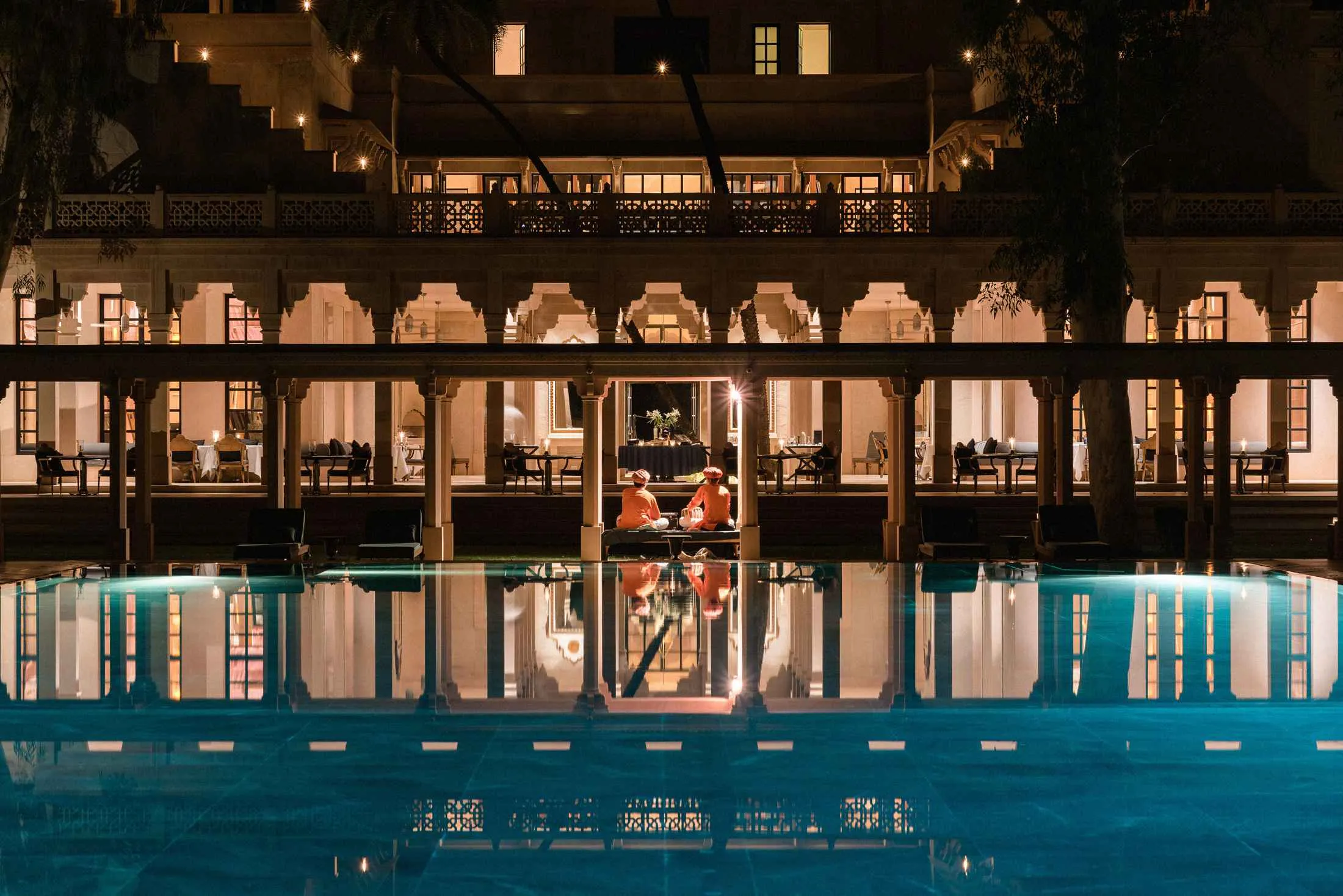 阿曼巴格的夜晚。摄影师:Sunil Thakkar 为彭博商业周刊课外活动: 宁静的 萨里斯卡老虎保护区和国家公园 (每人9美元) 距离这里有45分钟车程。除了孟加拉虎,你还会看到豹子、金狼、孔雀和猴子,以及寺庙和遗址。傍晚去是最佳的野生动物观赏时间——在7月1日之前,雨季开始时动物们会寻找避雨的地方。