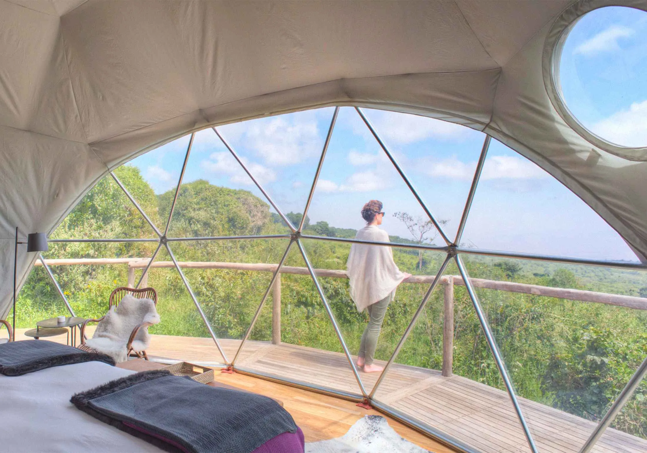 坦桑尼亚恩戈罗恩戈罗保护区的阿西利亚高地。来源:阿西利亚在新的 阿西利亚高地 (每晚760美元起,包含所有费用),靠近奥尔莫提火山,您可以在八个几何形状的帆布和有机玻璃圆顶之一中舒适地休息,这些住宿灵感来自马赛人建造的圆形 博马。(它们之间的距离足够远,以避免与其他客人频繁接触。)安排一次私人日落饮品——也许是一杯金汤力,或是25种威士忌之一——然后享用蜡烛晚餐,品尝当地特色菜肴,如绿香蕉汤和 乌干利,这是一种类似玉米粥的菜肴,是大多数坦桑尼亚餐点的基础。