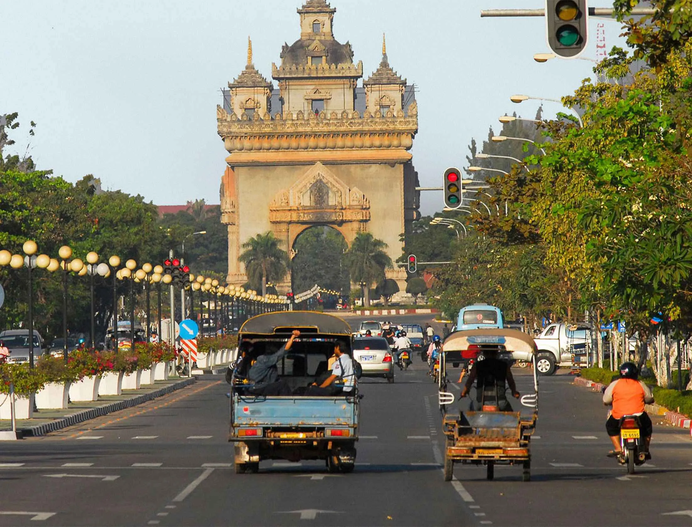老挝万象。来源:Salana精品酒店到达老挝首都比以往任何时候都容易:与邻国泰国的最近谈判开通了从曼谷的额外航班(从美国没有直飞航班),新酒店使万象成为寻求宁静和奢华的人的避风港。入住 Salana精品酒店 (每晚起价111美元),距离市中心几条街。房间结合了传统的老挝元素——高光抛光木材、当地纺织品、散落的缅栀花——与现代设施,如水疗级雨淋淋浴和平面电视。安顿好后,去看看霍普拉凯寺。该寺于1565年建成,是皇室的私人礼拜堂,佛教寺庙装饰着木头和石头雕像,漆门上有复杂的印度教雕刻。在探索城市的其他部分之前,沉浸在寺庙阴凉、修剪整齐的花园的宁静中。骑自行车是游览这个慢节奏的前法国贸易站的好方法;与东南亚其他地区不同,这里的交通并不疯狂,因此你不会面临生命危险。参加一个五小时的导游骑行之旅,沿着湄公河的柔和弯道骑行,和 Vientiane ByCycle (49美元);你将经过(更多)寺庙、总统府和其他庄严的住宅。