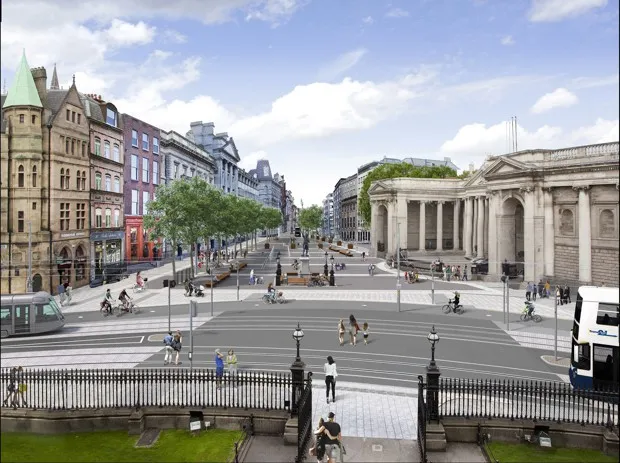 都柏林市议会的新计划旨在改造学院绿地,直接来自城市规划者的教科书:汽车将被挤出,以让位于行人、自行车和新的电车。将这个美丽但规划不善的空间转变为一个铺有花岗岩的广场,穿插着树木和喷泉,可能会对都柏林市中心的外观和感觉产生重大影响。