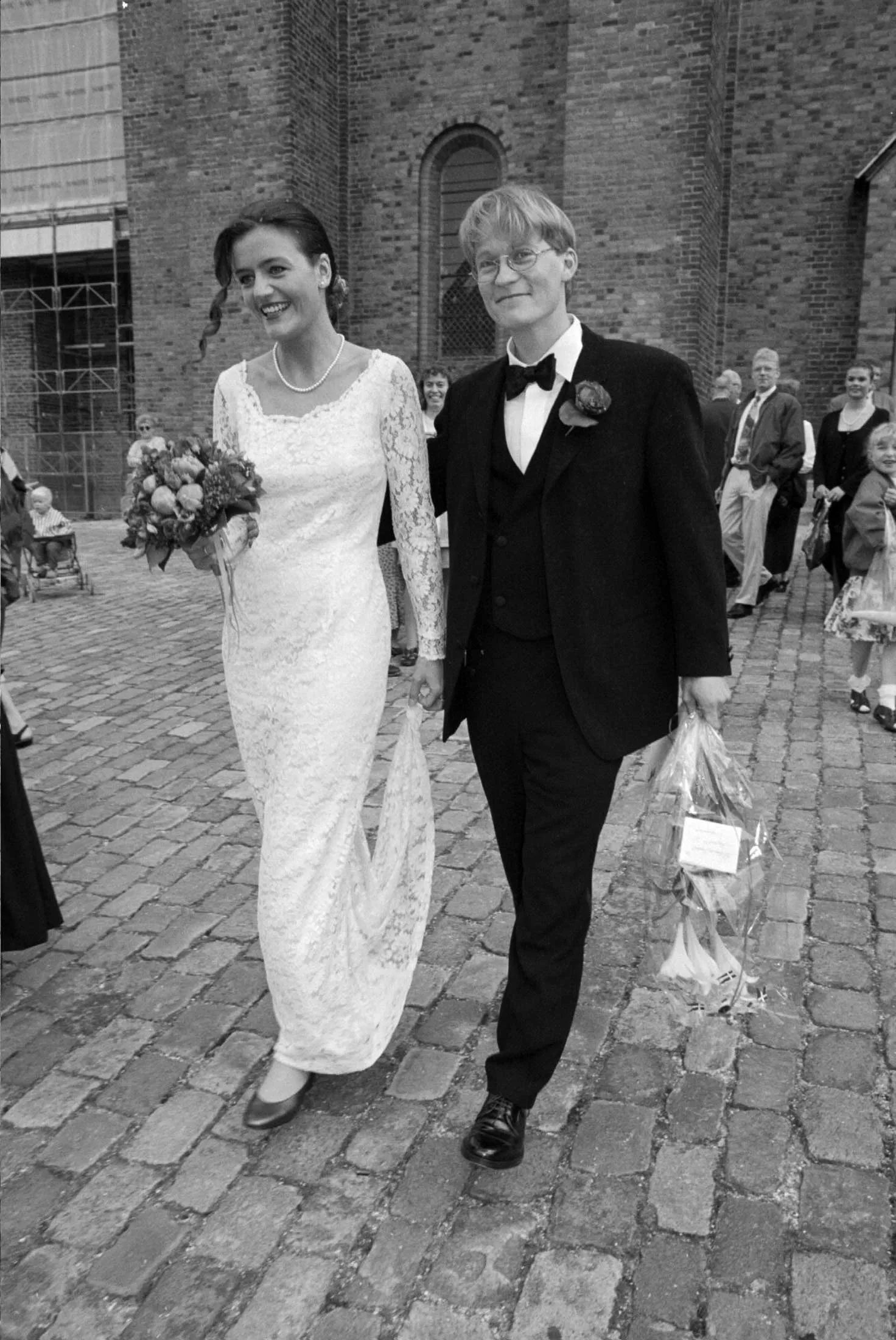 维斯塔格与托马斯·斯廷·延森在1994年的婚礼上。摄影师:Nordfoto/Scanpix/Sipa USA在2011年秋季,Vestager的职业生涯达到了一个转折点。一个保守派政府,坚信削减失业和提前退休福利是财政上合理的,因而以此为生存赌注,宣布重新选举。Vestager支持这些改革,但她通过宣称自己支持一个承诺撤回紧缩措施的左翼政党选举联盟而让所有人感到困惑。