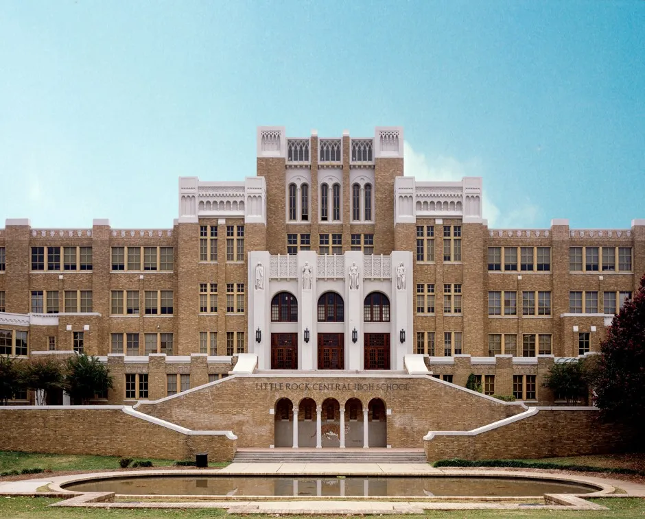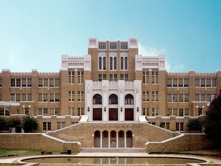 小石城建于1927年,当时是全国最大的高中,成为1957年全国学校去隔离斗争的焦点。当九名非裔美国学生在最高法院的反对下被阻止进入校园时,“小石城九人”成为第一个测试布朗诉教育委员会的学生。经过多年的恶化,学校需要650万美元的维修,国会于1998年11月将该校设立为国家历史遗址。至今仍作为一所公立高中运作。