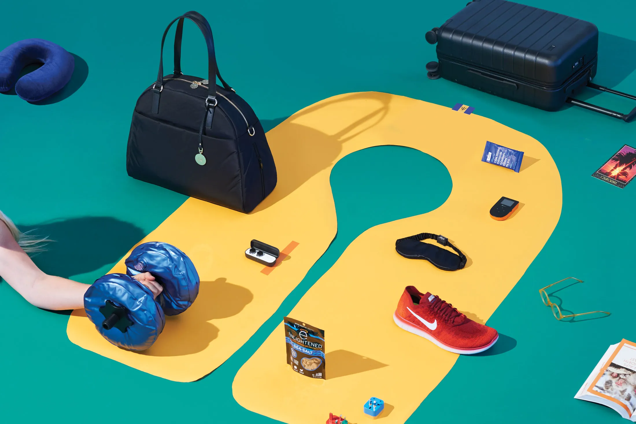 摄影师:Andrew B. Myers 为彭博商业周刊**“我最大的问题是坚持锻炼计划。城市酒店的健身选择有限,而且从网站上无法判断设备的质量。此外,我从不托运行李,所以额外的运动鞋占用了宝贵的打包空间。”** —Angela Berardino,首席战略与整合官,Turner Inc.,丹佛Nike Free RN Flyknit 运动鞋 *($120;store.nike.com)*足够时尚,可以在飞机上穿,但几乎没有重量,鞋底柔韧,可以适应你随身行李中的狭小空间。AquaBells ($47;aquabells.com),可携带的哑铃,可以用浴室水龙头的水填充,也不会占用空间。用完后只需排水,发泄一下对那个苛刻客户的愤怒。“我航班上的指定座位不是邀请参加两人网络活动。我不在乎你卖什么,你刚刚推销了谁,或者你要去哪里。” —Jennifer Hardy,创始人,Inhabit Interiors,巴尔的摩用 Happy Ears 耳塞 *($11;shop.happyears.co)*隔绝烦人的邻居,它们是消音的,而不是阻挡噪音,这样你仍然可以听到空乘人员问你是否想要椒盐卷饼。想要更高级的体验,可以试试蓝牙耳机 Here One 无线智能耳塞 ($300;brookstone.com)。它们使用“智能噪音过滤器”,同时作为音乐和电话通话的耳塞。如果你的邻座仍然不明白,戴上 Slip 丝绸睡眠眼罩 ($45;slipsilkpillowcase.com),并说:“别叫我吃晚餐。”“在机场的空闲时间是工作时间,但有些机场的 Wi-Fi 不好,有些有付费 Wi-Fi 但很少能用,更糟糕的是,有些根本没有互联网。拜托,已经是2017年了!” *—Kean Graham,创始人兼首席执行官,MonetizeMore,维多利亚,B.C.*移动热点让你创建一个私人 Wi-Fi 网络。备受推崇的 Skyroam *($100;amazon.com)*提供全球无限数据,每天 $8,这个价格可能比你在运营商计划中消耗国际数据的费用更便宜。“我不喜欢打包所有那些电源插座转换器。” —Steve Johnson,产品开发副总裁,Vectorworks Inc.,哥伦比亚,马里兰州Flight 001 4合1 通用旅行适配器 *($25;flight001.com;上面红色的)*可以在150个国家保持充电。或者试试 Loop 适配器 (起价 $18;amazon.com);它的内置 USB 端口让你可以把充电器留在家里。“我讨厌旅行者试图节省行李费用,带着他们的斯坦威大小的滚轮箱。即使他们知道自己在违反规则,他们仍然有胆量去烦扰空乘人员。” —Joelle Casteix,作者,加州橙县不要成为问题的一部分。Away 的 21.7 英寸硬壳行李箱由耐刮聚碳酸酯制成,配有四个360度轮子,并带有内置 USB 充电器 ($225;awaytravel.com)。如果你只是出去一晚,试试 Lo & Sons 的 O.G.:内部鞋袋可以防止你的鞋子弄脏衣物 ($295;loandsons.com)。“我讨厌无法吃得健康。被宣传为健康的食品并不健康。即食沙拉只配有充满化学成分的调料。” —Emily Lyons,Femme Fatale Media 总裁兼创始人,多伦多选择天然食品。吃 Pulse 烤鹰嘴豆 *($11 三包2盎司;pulseroastedchickpeas.com)*或 Enlightened 烤宽豆脆片 ($60 一盒48个1盎司袋;eatenlightened.com),这两者都是无麸质且富含蛋白质和纤维。为了满足你的甜食欲望,带上一个 RxBar ($65 一盒30个;rxbar.com)。它只有几种成分,包装正面用大字母清晰列出。