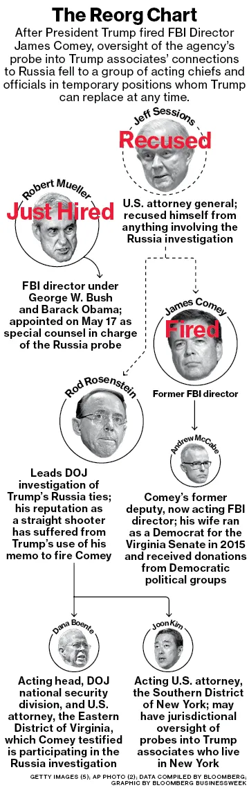 目前,俄罗斯调查主要由随时可能被撤换的临时官员管理——这使得罗森斯坦显得更加重要。是否新任命的总统公开称调查为“猎巫行动”的人会妨碍可能的指控,将由他来决定。他还将在任命科米的替代者中发挥作用。罗森斯坦和塞申斯在母亲节周末面试了该职位的候选人。