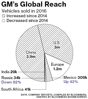 巴拉表示,她对在任何没有盈利机会的市场中保持通用汽车不感兴趣。但一个今天看似不盈利的市场,明天可能会变成金矿。欧洲的市场规模与美国相当。根据研究机构IHS Markit的预测,印度预计到2021年将成为世界第三大市场。而她关闭的通用汽车唯一工厂的俄罗斯,终于显示出复苏的迹象。福特在俄罗斯坚持了15亿美元的合资企业,并在2017年第一季度看到那里的销售增长了93%。总的来说,通用汽车已经放弃了近150万辆来自被放弃地区的年销售。