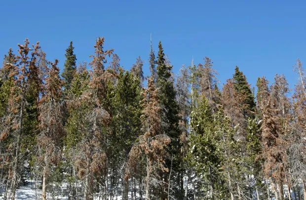 昆虫的大规模迁徙可能会对木材行业造成干扰。我们可能会看到极其昂贵、危险且似乎永无止境的灭火季节。“在火灾生态学界,这是一个有些争议的话题,因为几乎没有实证证据表明,‘是的,昆虫损害和由此造成的死树会导致火灾风险增加,或者可能更多火灾,’”胡珀说。“但是当你与那些在这些森林中花费大量时间的人交谈时,比如消防员,这个想法是非常直观的。”