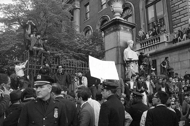 1968年,纽约市警察在哥伦比亚大学百老汇门口旁边,学生和其他人聚集在一起。美联社照片学校不仅招募了更多有色人种学生,还引入了更多黑人和拉丁裔教师,同时增强了课程和项目,以更好地服务于哈莱姆邻里的需求。推动改革的学生和教师们还能够利用福特基金会慷慨提供的1000万美元赠款,建立一个专注于少数族裔事务的“城市中心”。然而,这样的胜利是短暂的。由于经济低迷的开始以及 理查德·尼克松总统的权力,大学在1970年代初期终止了这些新项目。