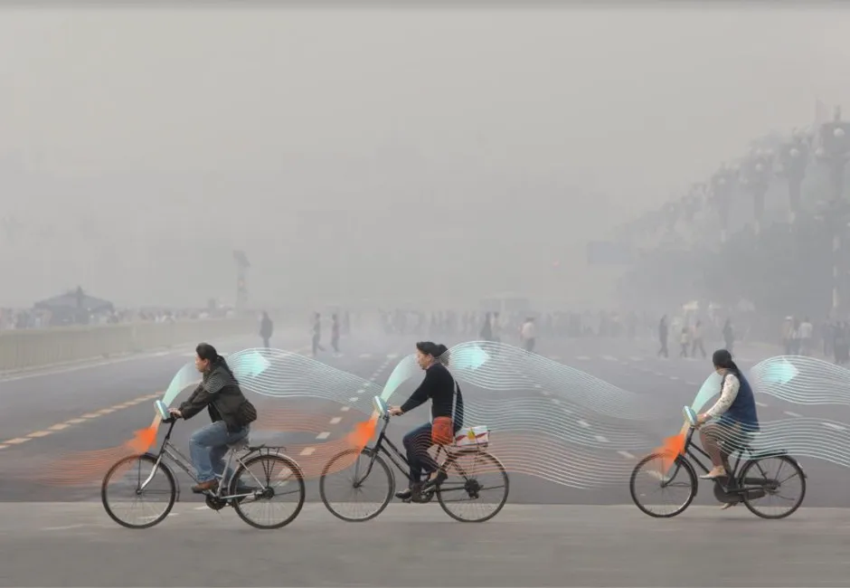 雾霾进入,新鲜空气出来。Roosegaarde工作室在恶劣、浓稠的雾霾中行走已经够糟糕了;以适中的速度骑行其中就像把你的肺连接到福特F-150的排气管上。但在未来,骑行在严重的空气污染中可能会减少伤害,如果荷兰艺术家Daan Roosegaarde的两轮干预能够实现。