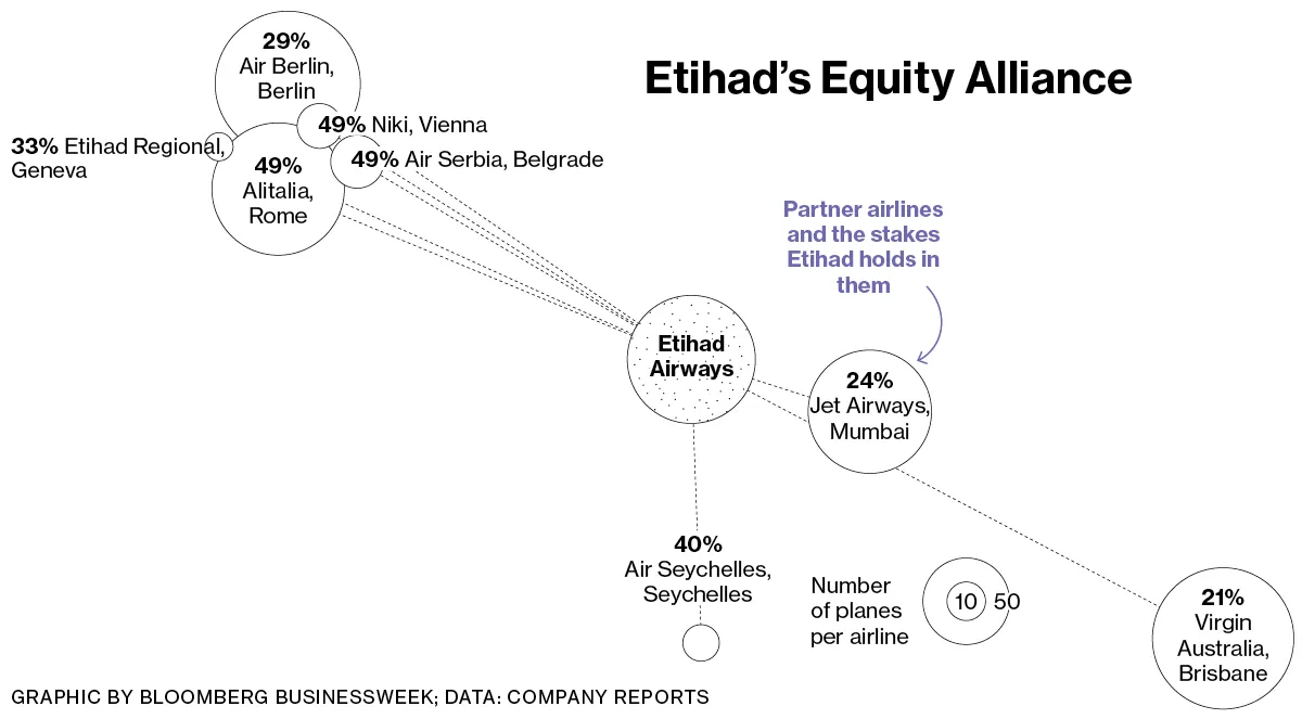 ***结论:***阿布扎比的 Etihad Airways 已投资于八家航空公司,以构建全球网络,但盈利却难以实现。