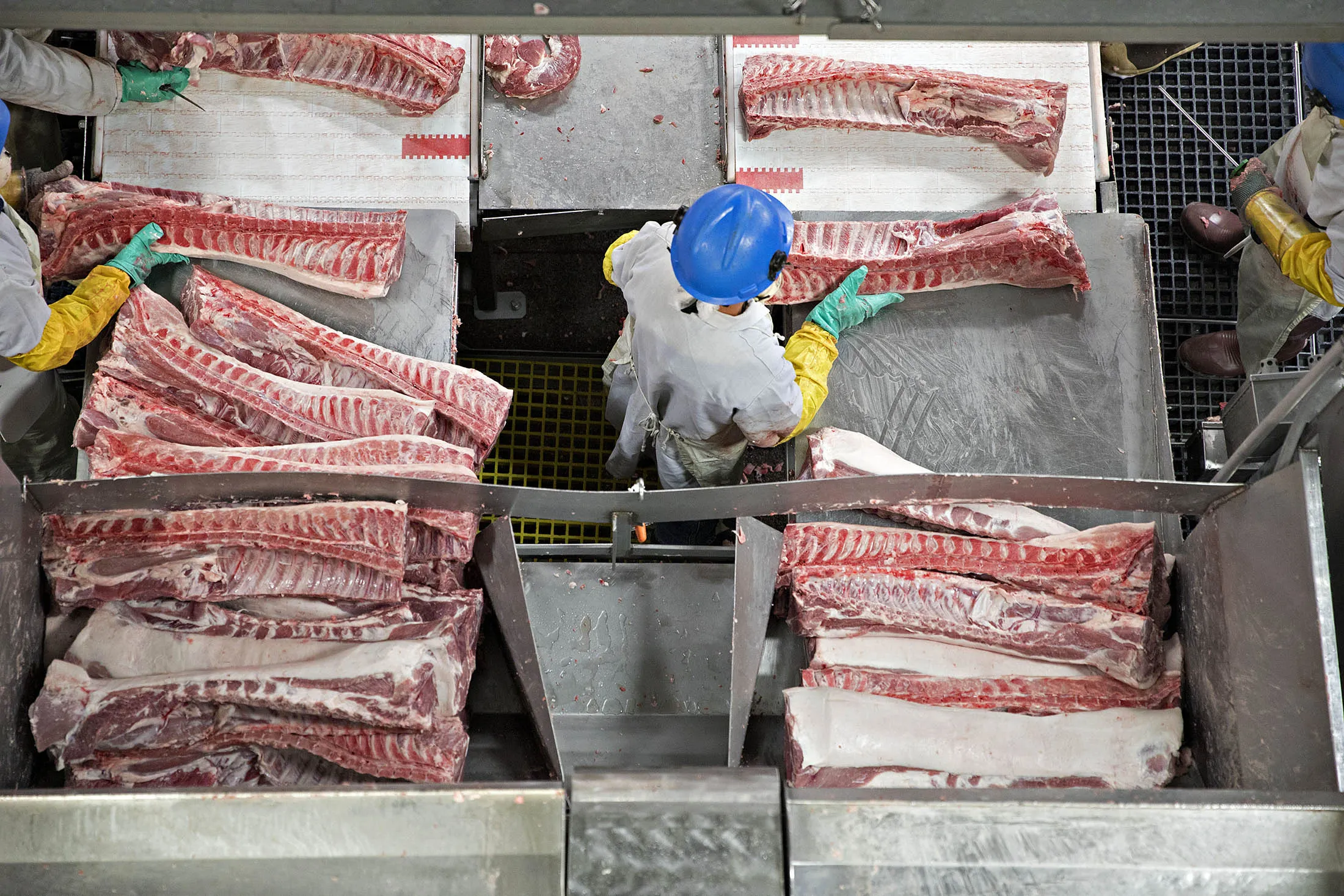 屠夫在密苏里州的史密斯菲尔德食品加工厂修整猪肉里脊。摄影师:丹尼尔·阿克尔/彭博社其中包括WH集团在2013年收购位于弗吉尼亚州的史密斯菲尔德食品公司,这是一家全球最大的猪肉生产商,以及中国化工集团以430亿美元收购瑞士农药制造商先正达的协议。